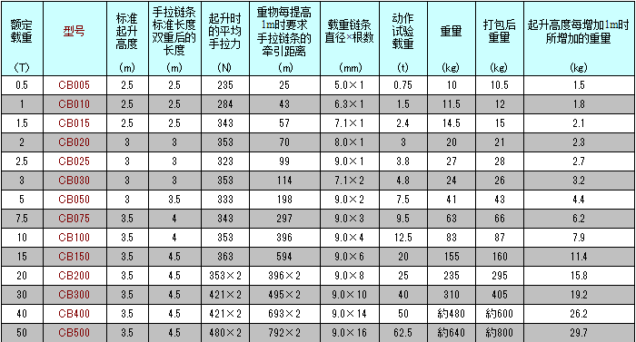 手拉葫蘆參數(shù)