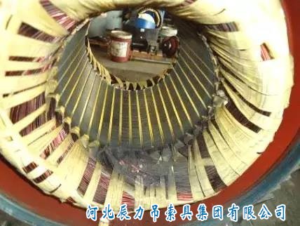 繞組全部變黑色,端部扎帶變色并且變脆甚至斷裂。